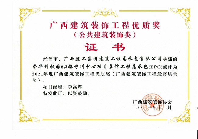 2021年度广西修建装饰工程优质奖...