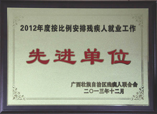 安排残疾人就业先进单位牌匾